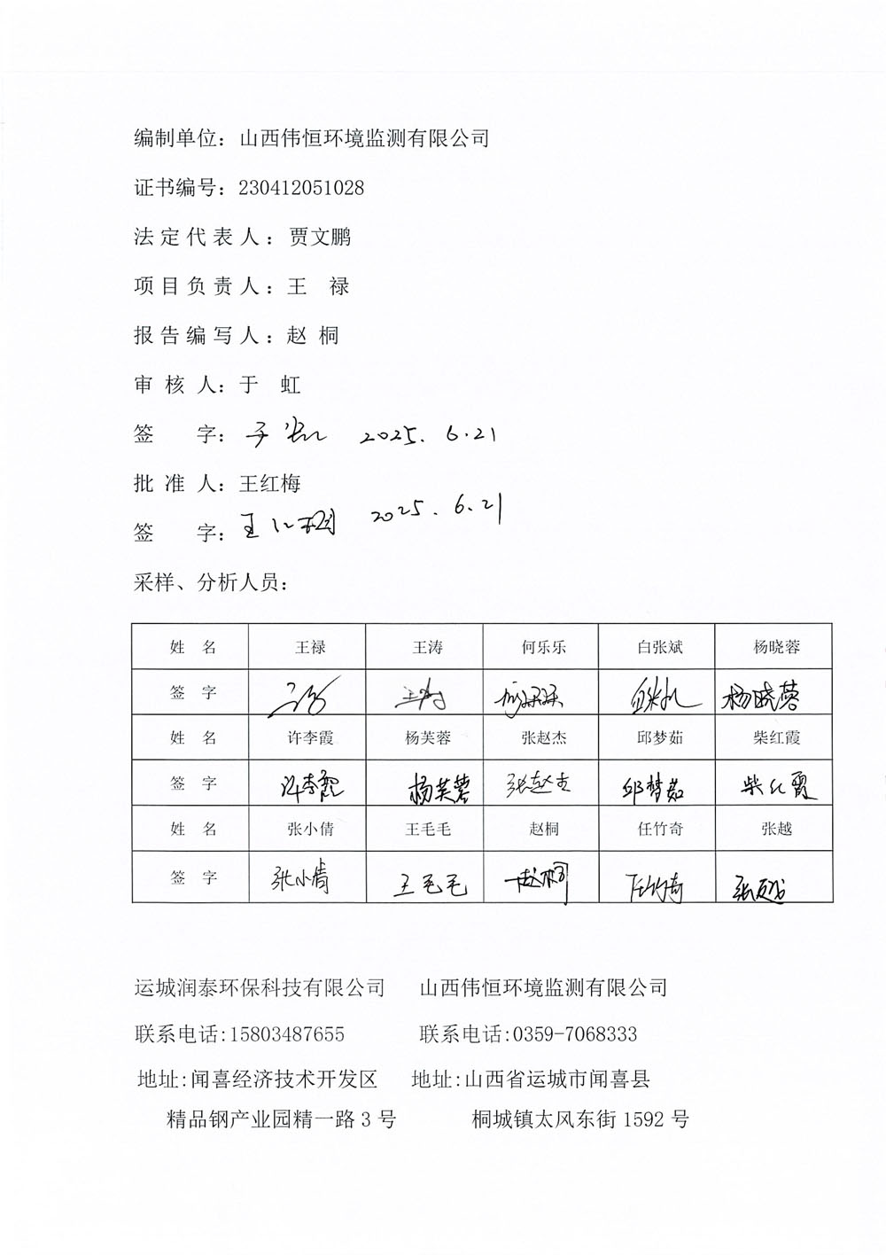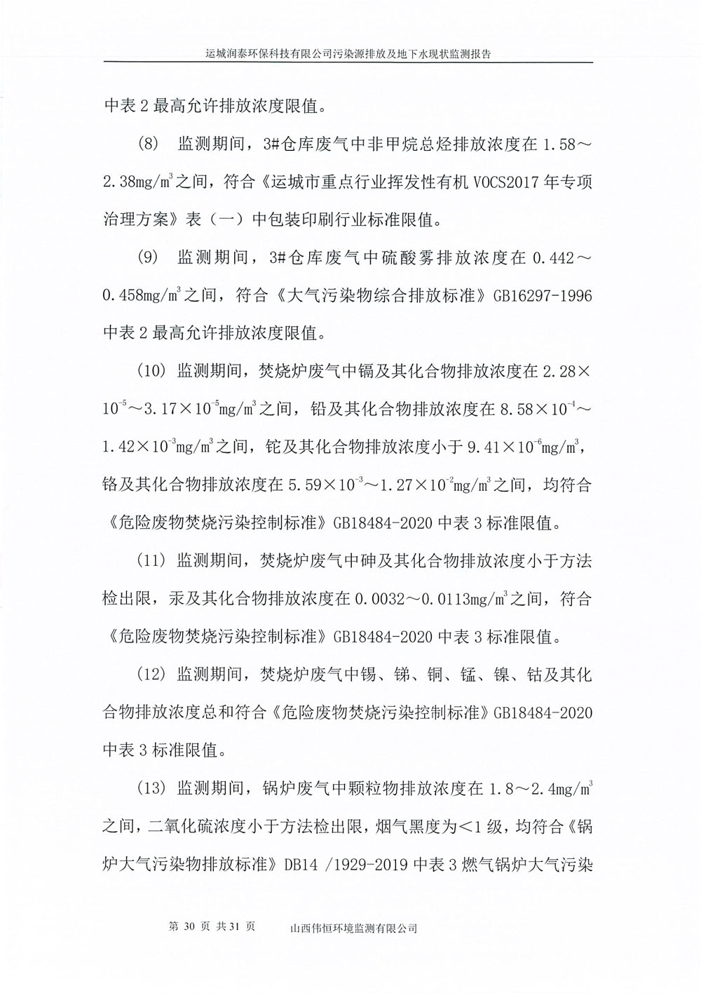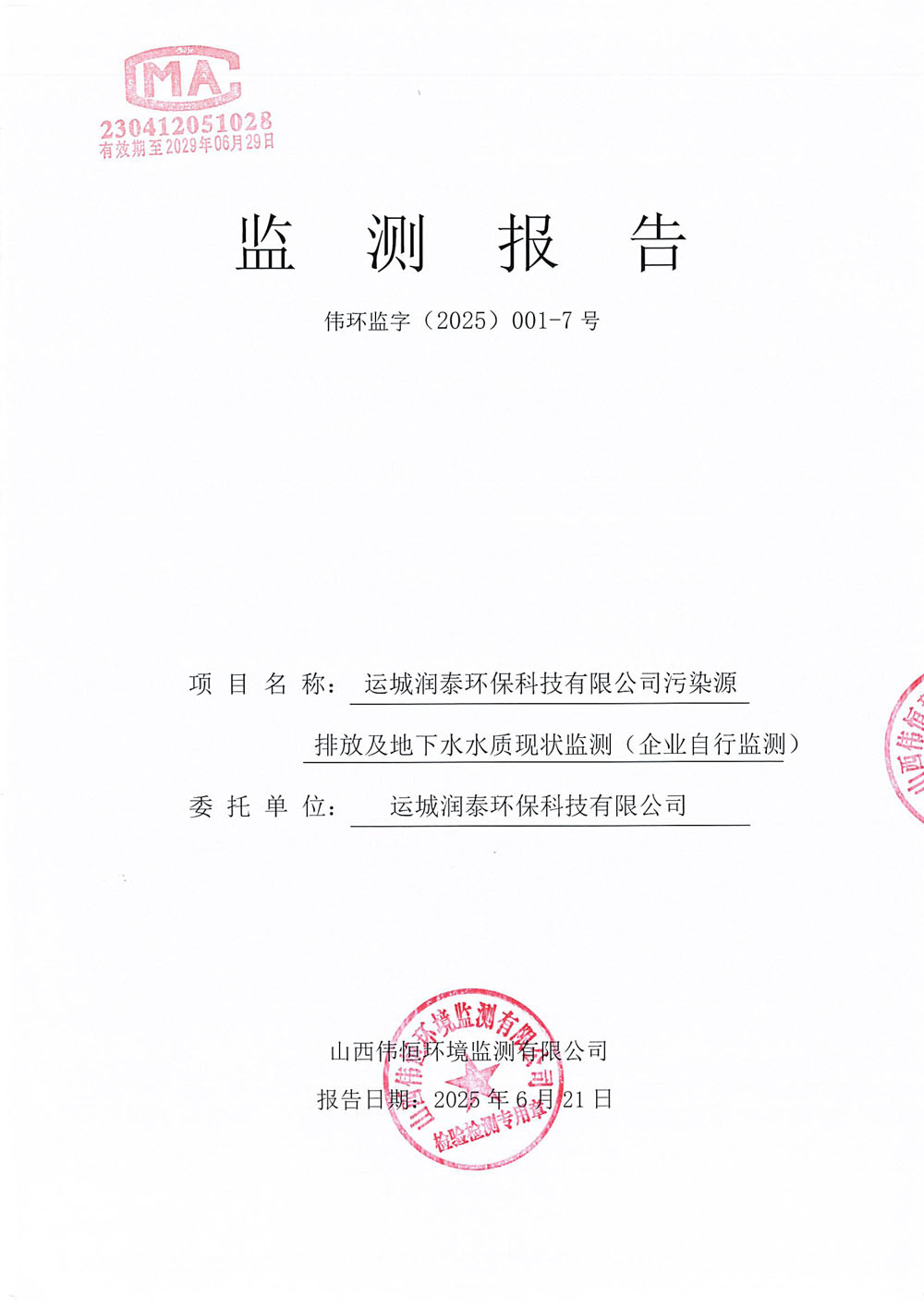 2025年潤泰環(huán)保六月份自行監(jiān)測報告