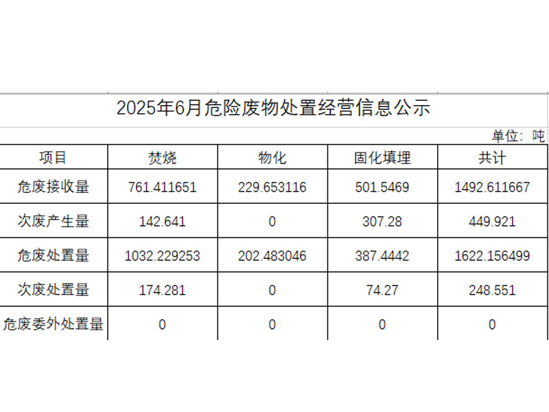 2025年六月危險(xiǎn)廢物處置經(jīng)營(yíng)信息公示